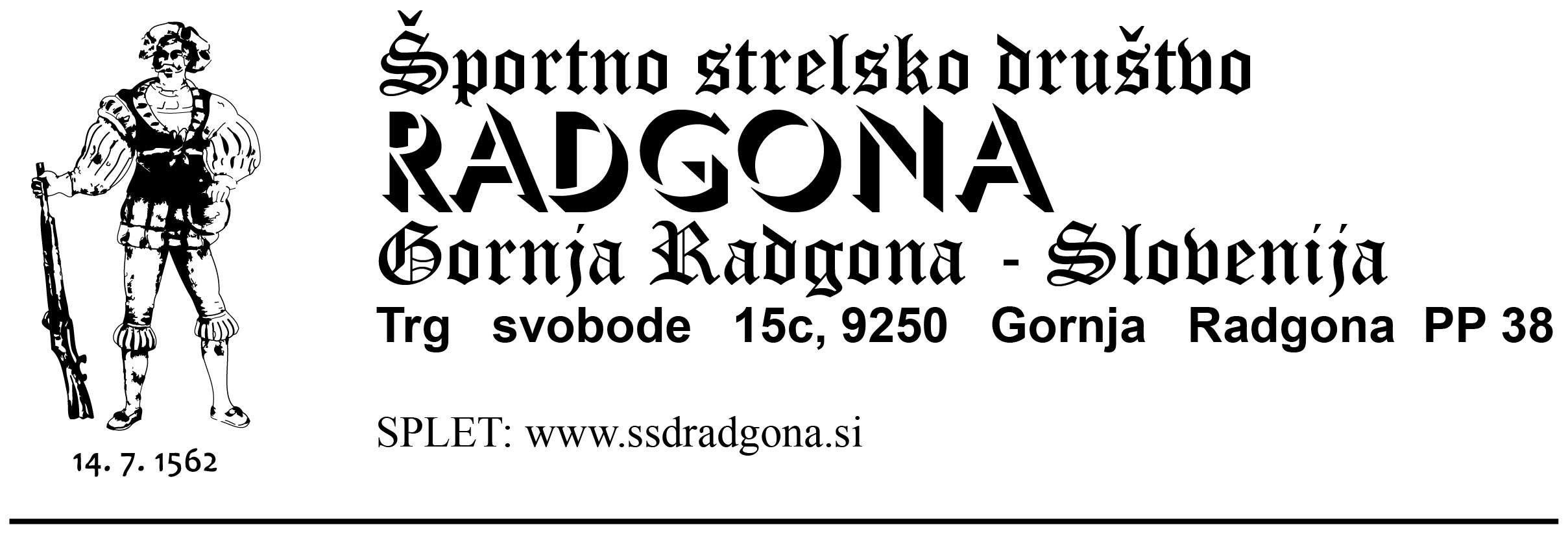 Razpis Športno strelsko društvo Radgona Naslov: Trg Svobode 15c, 9250 Gornja Radgona Email: info@ssdradgona.si